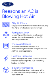 Another common reason for an AC blowing hot air is low refrigerant levels. Refrigerant is the substance that absorbs heat from the air inside your home and cools it down. If your AC is low on refrigerant, it cannot properly cool the air, and your system may blow warm air instead. Low refrigerant levels often indicate a leak in the system, which should be fixed by a professional technician. They will also need to recharge the refrigerant once the leak is repaired.